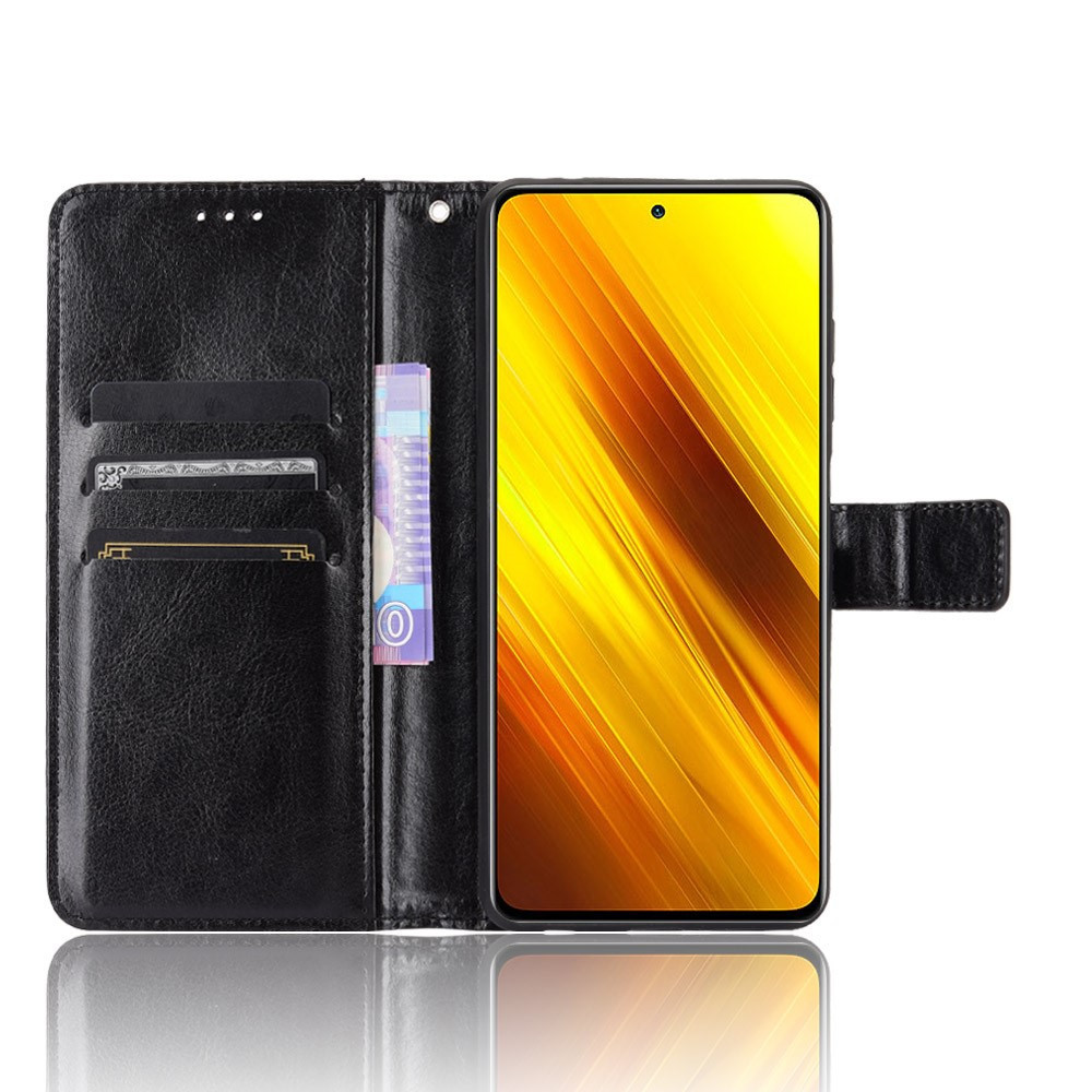 RMPACK Xiaomi Poco X3 Tok Fényes Notesz Tok Kártyatartóval Fekete