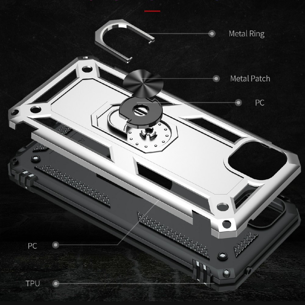 RMPACK Samsung Galaxy A22 5G Armor Tok Ütésálló 2in1 PC TPU Series Gyűrűs - Kitámasztható Ezüst