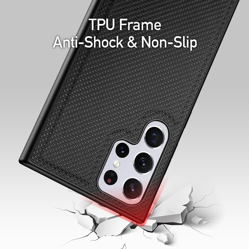 RMPACK Samsung Galaxy S22 Ultra 5G Szilikon Tok 2in1 DUX DUCIS FINO Series Textil Mintázattal Fekete