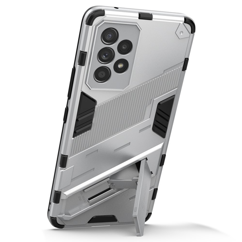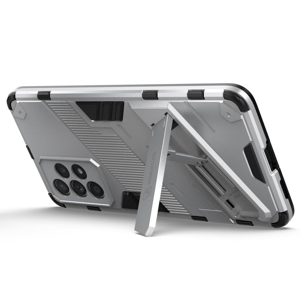 RMPACK Samsung Galaxy A53 5G Tok Ütésállókivitel Kitámasztható PC + TPU 2in1 Anti-Drop Series Kameralencse védelemmel Ezüst