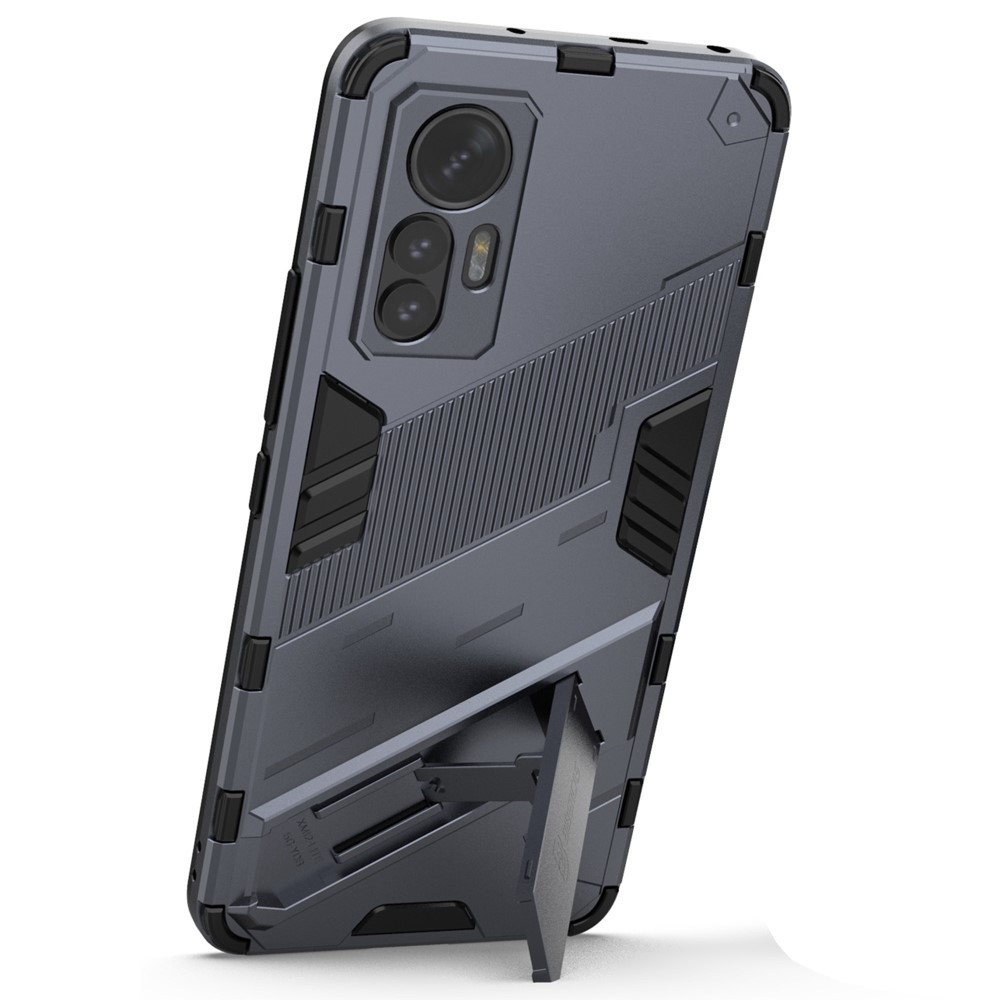 RMPACK Xiaomi 12 Lite Tok Ütésállókivitel Kitámasztható PC + TPU 2in1 Anti-Drop Series Kameralencse védelemmel Sötétkék