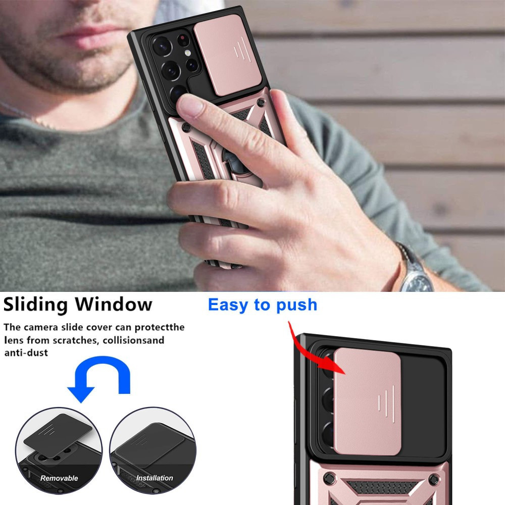 RMPACK Samsung Galaxy S23 Ultra Ütésálló Tok Best Armor Ring Style + Camera Protector Lencsevédelemmel Rózsaarany
