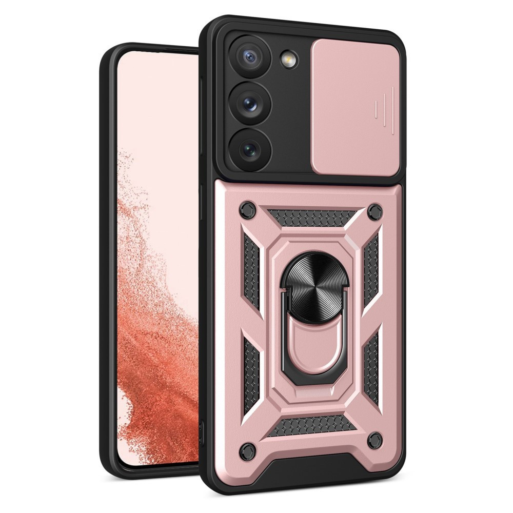 RMPACK Samsung Galaxy S23+ Ütésálló Tok Best Armor Ring Style + Camera Protector Lencsevédelemmel Rózsaarany